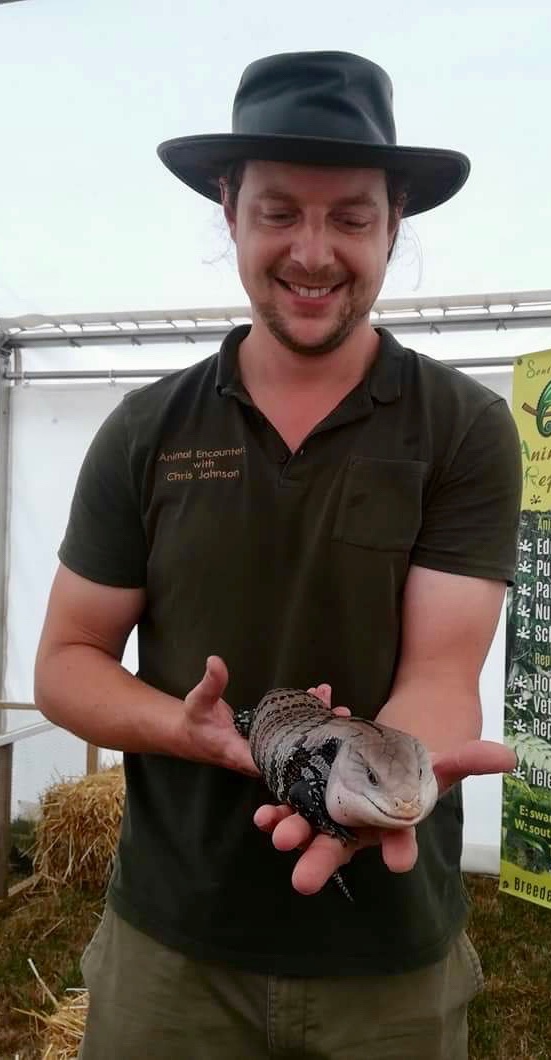 Barney my beloved Blue-Tongued Skink and I at the Totnes Show.
